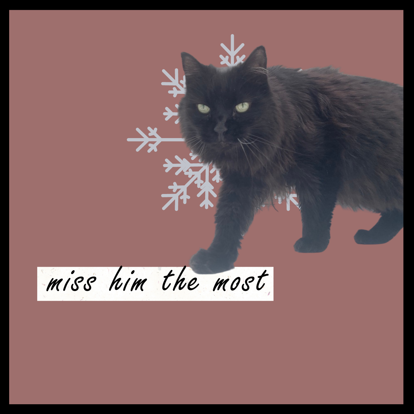 This is a tribute song for Kronos, a human-like, long-haired, sweet black cat who moved on from this word. We shared an especially unique and strong bond. He was my companion through the ups and downs of life – through breakups, getting sober, losing friends, and getting friends.